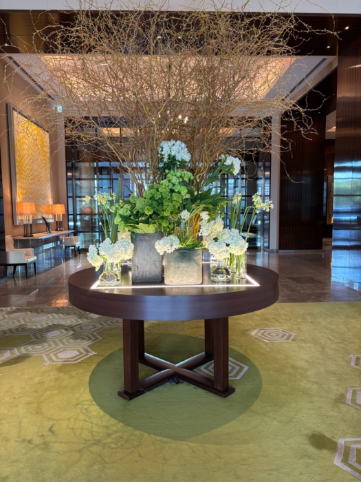 ラウンジの装花も好きな春グリーンになっていて爽やか。