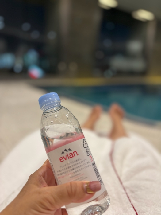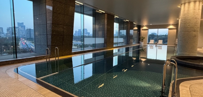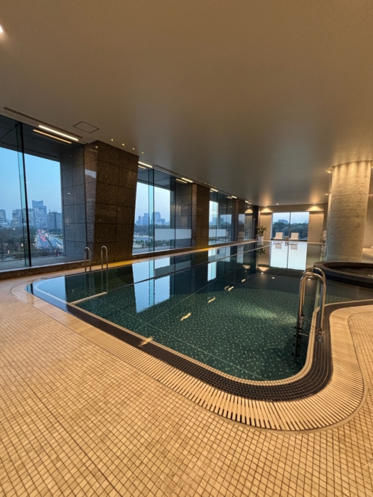 夕暮れ時の都内と皇居を眺めながら独り占めプールでした。